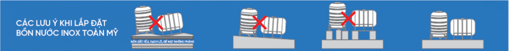 Không nên lắp đặt bồn nước ở mép trần, mép lan can, bề mặt không chịu được trọng lực. Nên lắp đặt bồn ở nơi có vị trí bằng phẳng, nền vững chắc. Xem thêm cách lắp đặt bồn nước inox